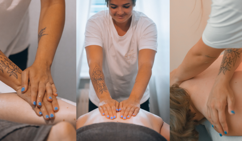 Le massage permet de venir libérer les tissus, détendre les tensions musculaires, amener du mouvement dans le corps. Au travers de différente techniques :